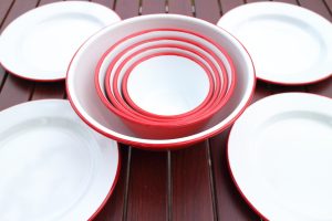 携帯性を考慮すればキャンプに持って行くには家庭用の食器よりもやや小ぶりな方が向いているように思うかもしれませんが、オートキャンプの場合はそのくらいの差は誤差のように思います。
