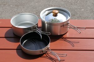 最近流行の焚き火での直火調理などにはスキレットや鉄フライパンやダッチオーブンなどの調理器具の方が適していると思います。