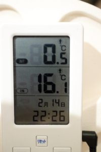 外気温が0℃前後でも室内は安定して15℃以上はキープしていました。