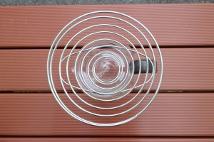 元々はキャンプに持ち出すため、薄く折り畳めて軽いバネ形状にしたわけです。