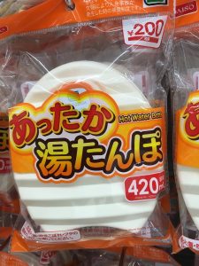 残念ながら100円ではないのですが、200円で小さなプラスティック製の湯たんぽが売られています。