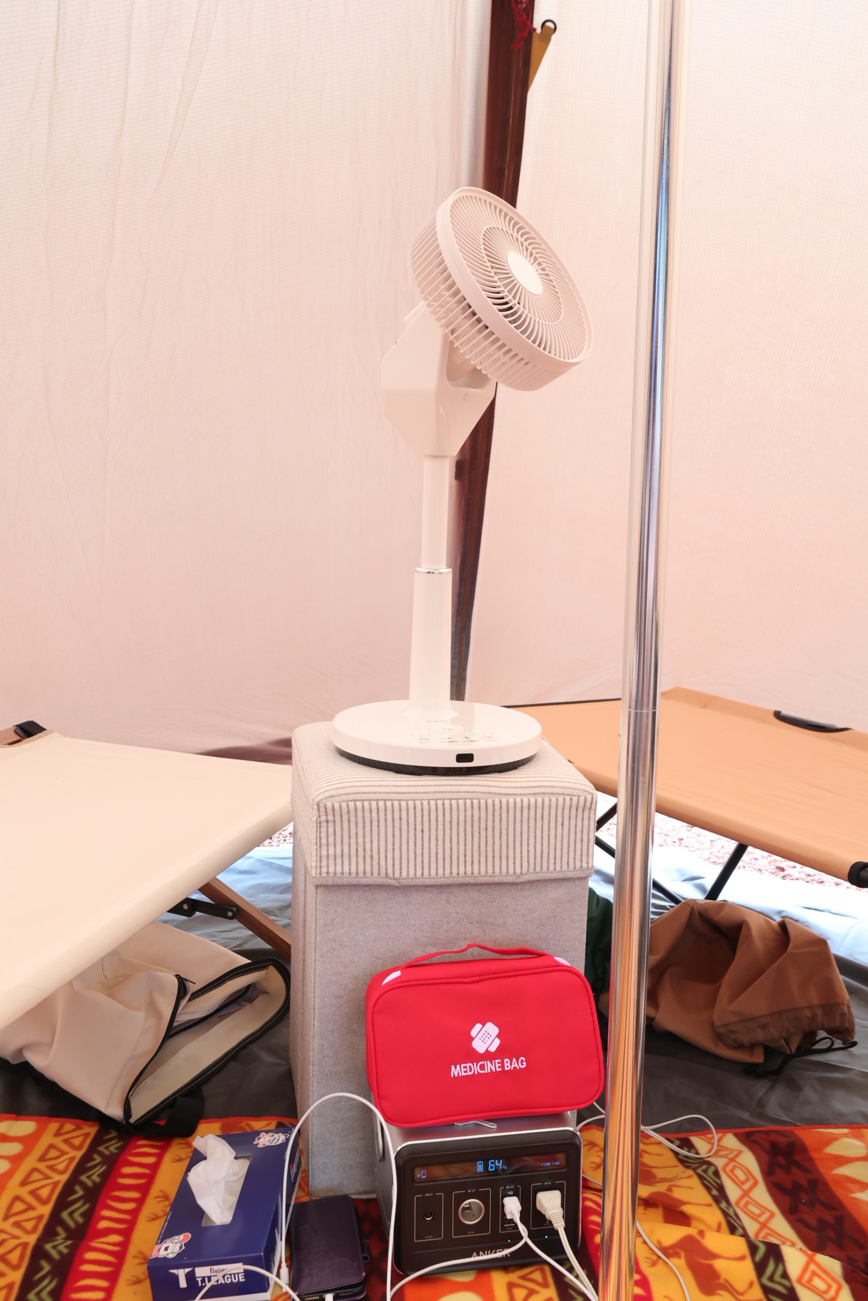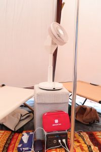 電源サイトを借りるか、写真のようにポータブル電源を使えばどこでも使用可能です。
