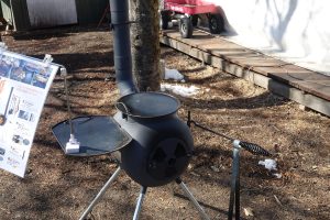 管理棟を出ると目の前に薪ストーブが置かれています。