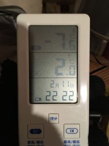 温度計は出入り口近くに置いているので低めに出ていますが、石油ストーブがついている間は凍えるような寒さは感じません。