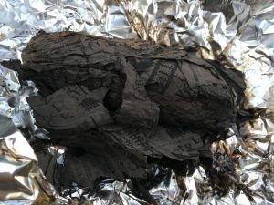 アルミホイルを剥がして新聞紙が炭化していれば大体大丈夫です。