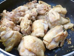 鶏肉が下の写真くらい焦げ目がつくまで炒めます。