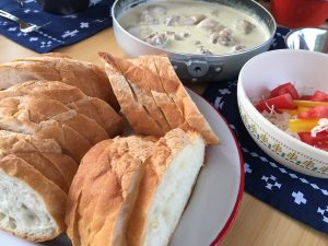 鶏肉が主役と思いがちですが、ソースを漬けたバゲットが主役です!