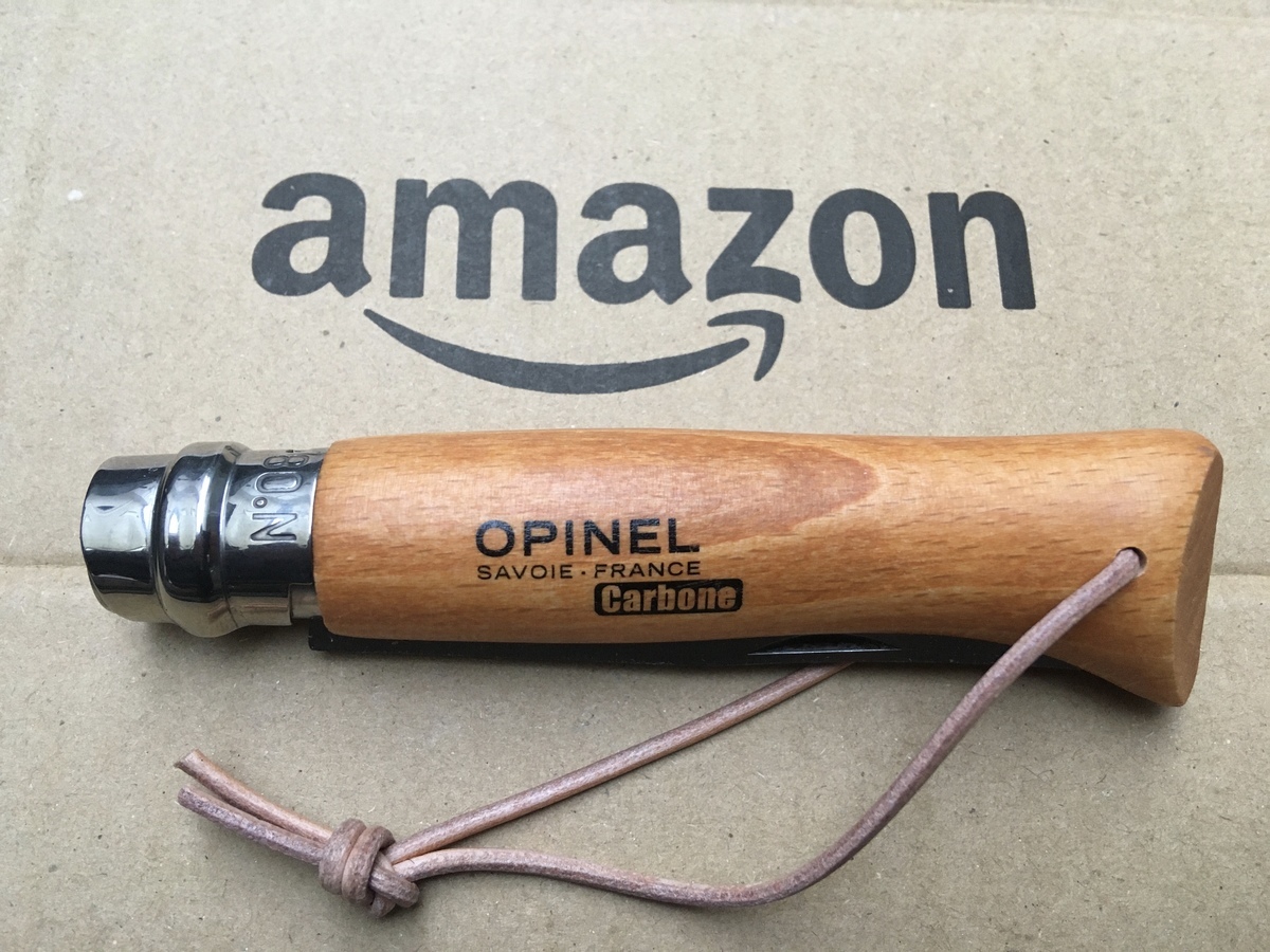 オピネルのナイフは販売店により大きく価格がバラつきますが、No8のカーボンだと最近の底値は2000円を少し切るくらいだと思います。