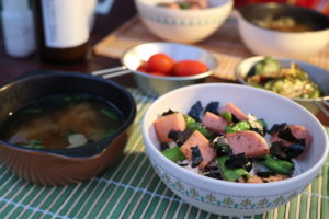 そんなオシャレさに反するように、我が家の夕飯は簡単お手軽なスパム丼です。