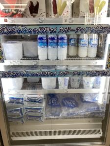 お風呂の後は、キャンプ場からは逆方向に車で進んで2分くらいのところにローソンがあるので、氷を買い出しに行きます。