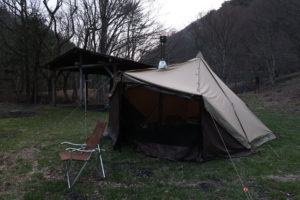 肌寒いと言っても外気温は12〜3度、幕内で薪ストーブを使うと暑いくらいです。