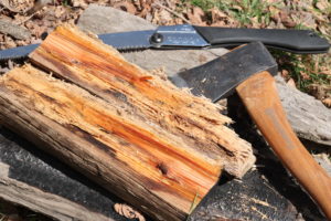 朝食を食べ終えたら薪作り。