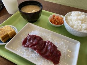 食事も感謝デーの特典で馬刺し定食1200→600円でした!!