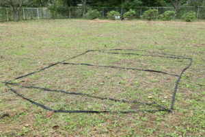 先ず設営するには最初にセルフスタンディングテープを広げます。