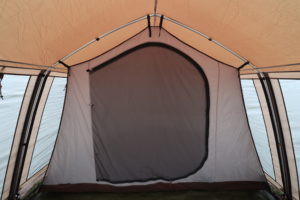 テント内でのインナーテント出入り口は、D形状態。