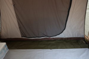 順正オプションのPVCグラウンドシートはネオキャビンの底面全てを覆うサイズではなく、ハーフサイズ。